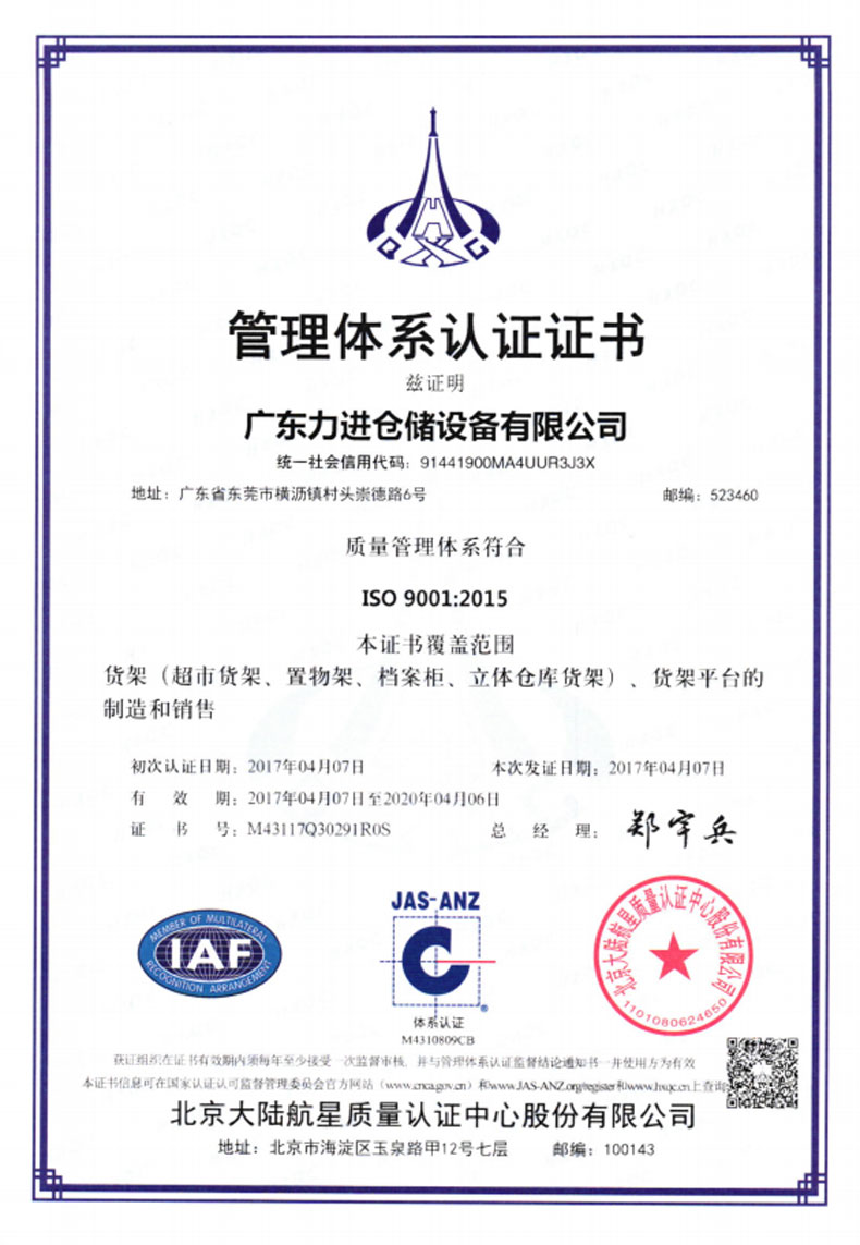 ?2016年5月    更名為廣東力進(jìn)倉儲(chǔ)設(shè)備有限規(guī)公司,搬遷至東莞市橫瀝鎮(zhèn)村頭工業(yè)區(qū),占地面積12800平方米。